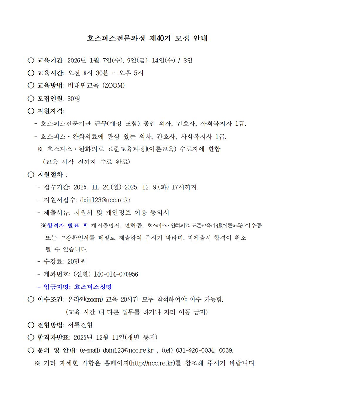 1. 호스피스전문과정 40기 운영계획(안)2.hwp