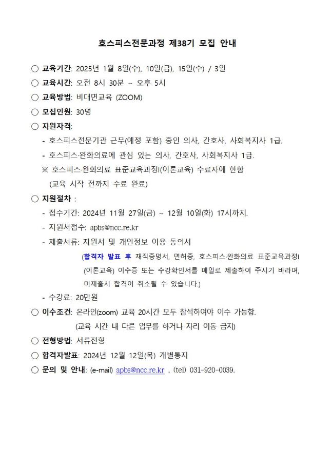 붙임1. 2025년도 호스피스전문과정 제38기 운영안2.hwp